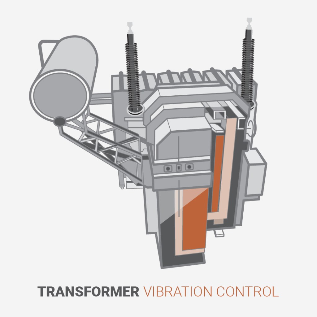 Commissioned to create an illustration of a typical transformer showing points for vibration control.